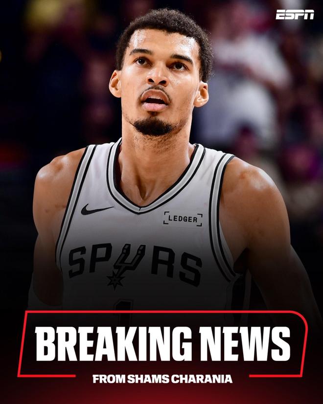 Shams:文班亚马左小腿拉伤,预计缺阵几周时间
